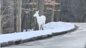 AccuWeather ಹೆಸರಿನ ಎಕ್ಸ್ ಖಾತೆಯಲ್ಲಿ ಹಂಚಿಕೊಳ್ಳಲಾಗಿರುವ ಈ ವಿಡಿಯೋದಲ್ಲಿ ಹಿಮದ ರಾಶಿಯ ಮಧ್ಯೆ ಗುಲಾಬಿ ಬಣ್ಣದ ಕಂಗಳ ಹಾಗೂ ಶ್ವೇತ ವರ್ಣದಿಂದ ಕೂಡಿದ ಆಲ್ಬಿನೋ ಜಿಂಕೆ ನಿಂತಿರುವ ಸುಂದರ ದೃಶ್ಯವನ್ನು ಕಾಣಬಹುದು. ಮಹಿಳೆಯೊಬ್ಬರು ಕಾರಿನಲ್ಲಿ ಹೋಗುತ್ತಿದ್ದ ಸಂದರ್ಭದಲ್ಲಿ ಅವರ ಕಣ್ಣಿಗೆ ಈ ಅದ್ಭುತ ಪ್ರಾಣಿ ಕಾಣಿಸಿಕೊಂಡಿದೆ.