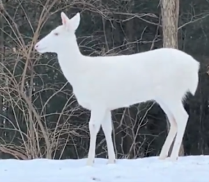 ಹಿಮಾವೃತ ಪ್ರದೇಶದಲ್ಲಿ ಅತ್ಯಪರೂಪದ ಬಿಳಿ ಬಣ್ಣದ ಆಲ್ಬಿನೋ ಜಿಂಕೆ ಕಾಣಿಸಿಕೊಂಡಿದೆ. ಕಾಡಿನ ಸಮೀಪದಲ್ಲುರುವ ರಸ್ತೆಯಲ್ಲಿ ಹೋಗುತ್ತಿರುವ ವೇಳೆ ಮಹಿಳೆಯೊಬ್ಬರ ಕಣ್ಣಿಗೆ ಸುಂದರವಾದ ಆಲ್ಬಿನೋ ಜಿಂಕೆ ಕಾಣಿಸಿಕೊಂಡಿದ್ದು, ಈ ದೃಶ್ಯವನ್ನು ಆಕೆ ಕ್ಯಾಮೆರಾದಲ್ಲಿ ಸೆರೆ ಹಿಡಿದು ಸೋಷಿಯಲ್ ಮೀಡಿಯಾದಲ್ಲಿ ಶೇರ್ ಮಾಡಿಕೊಂಡಿದ್ದಾರೆ.
