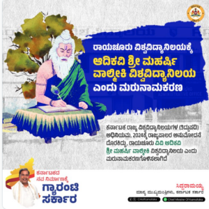ರಾಯಚೂರು ವಿಶ್ವವಿದ್ಯಾಲಯ ಇನ್ನುಮಂದೆ ಶ್ರೀ ಮಹರ್ಷಿ ವಾಲ್ಮೀಕಿ ವಿಶ್ವ ವಿದ್ಯಾನಿಲಯ!