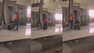 ವೈರಲ್ ಆಗಿರುವ ವಿಡಿಯೋದಲ್ಲಿ ಮೆಟ್ರೋ ನಿಲ್ದಾಣದ ಫ್ಲಾಟ್ ಫಾರ್ಮ್ ನಲ್ಲಿರುವ ಕಟ್ಟೆಯಲ್ಲಿ ಯುವಕನು ಕುಳಿತುಕೊಂಡಿರುವುದನ್ನು ಕಾಣಬಹುದು. ಎದುರಿಗೆ ಆತನ ಪ್ರೇಯಸಿಯೂ ನಿಂತುಕೊಂಡಿದ್ದು ಆತನು ಆಕೆಯ ಪಾದಗಳನ್ನು ಮೂರು ಸಲ ಮುಟ್ಟಿ ಕಣ್ಣಿಗೆ ಒತ್ತಿಕೊಳ್ಳುತ್ತಿರುವುದನ್ನು ಕಾಣಬಹುದು. ಆ ಬಳಿಕ ಕೆಲ ನಿಮಿಷಗಳ ಕಾಲ ಇಬ್ಬರೂ ಮಾತುಕತೆ ನಡೆಸಿದ್ದಾರೆ. ವಿಡಿಯೋದಲ್ಲಿ ಯುವತಿ ಕೈಯಲ್ಲಿ ಕ್ಯಾಂಡಿ ಹಿಡಿದುಕೊಂಡಿರುವ ಈ ಯುವತಿಯೂ ಕುಣಿಯುತ್ತಿರುವುದನ್ನು ಕಾಣಬಹುದು.