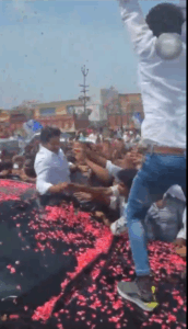 ಜಗನ್ ಮೋಹನ್ ರೆಡ್ಡಿ ಅವರಿಗೆ ಪುಷ್ಪಾರ್ಚನೆ ಮಾಡಲು ನೂರಾರು ಅಭಿಮಾನಿಗಳು ಮುಂದಾಗಿದ್ದಾರೆ. ಈ ವೇಳೆ ಚೀಲಿ ಸಿಂಗಯ್ಯ ಸಹ ಹೋಗಿದ್ದಾನೆ. ಆದ್ರೆ, ನೂಕು ನುಗ್ಗಲಿನಲ್ಲಿ ಬ್ಯಾಲೆನ್ಸ್ ತಪ್ಪಿ ಜಗನ ಇದ್ದ ಕಾರಿನ ಮುಂಭಾಗದಲ್ಲಿ ಬಿದ್ದಿದ್ದಾರೆ. ಇದನ್ನು ತಿಳಿಯದೆ ಕಾರು ಸಿಂಗಯ್ಯ ತಲೆ ಮೇಲೆ ಹರಿದಿದೆ. ವೈರಲ್ ವಿಡಿಯೊದಲ್ಲಿ ನೆಲದ ಮೇಲೆ ಬಿದ್ದ ಚೀಲಿ ಸಿಂಗಯ್ಯ ಅವರ ಕುತ್ತಿಗೆ ಮೇಲೆ ಕಾರಿನ ಮುಂದಿನ ಚಕ್ರ ಹರಿದುಹೋಗಿರುವುದು ಕಂಡು ಬಂದಿದೆ. ಸ್ಥಳೀಯರು ಕೂಡಲೇ ಪೊಲೀಸರ ಗಮನಕ್ಕೆ ಈ ವಿಷಯ ತಂದಿದ್ದಾರೆ. ಕೂಡಲೇ ಸಿಂಗಯ್ಯ ನನ್ನುಗುಂಟೂರು ಸರ್ಕಾರಿ ಆಸ್ಪತ್ರೆಗೆ ಕರೆದೊಯ್ದಿದ್ದಾರೆ. ಆದ್ರೆ ಚಿಕಿತ್ಸೆ ಫಲಕಾರಿಯಾಗದೆ ಅವರು ಮೃತ ಪಟ್ಟಿದ್ದಾರೆ ಎಂದು ತಿಳಿದುಬಂದಿದೆ.