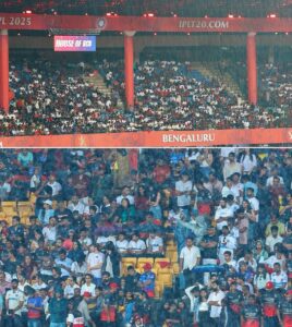 ಆರ್ಸಿಬಿ ತಂಡದ ಬಹುತೇಕ ಅಭಿಮಾನಿಗಳು ವೈಟ್ ಜೆರ್ಸಿಯಲ್ಲಿ ಆಗಮಿಸಿದ್ದರು. ಇನ್ನೂ ಕೆಲವರು ಬಳಿ ಉಡುಪಿನಲ್ಲಿ ಕಾಣಿಸಿಕೊಂಡರು. ಈ ಮೂಲಕ ವಿರಾಟ್ ಕೊಹ್ಲಿಯನ್ನು ತಾವೆಷ್ಟು ಪ್ರೀತಿಸುತ್ತೇವೆ ಎಂಬುದನ್ನು ವಿಶ್ವಕ್ಕೆ ಸಾರಿದರು. ಹೌದು, ಇಡೀ ವಿಶ್ವದಲ್ಲೇ ಅತ್ಯಂತ ನಿಷ್ಠಾವಂತ ಅಭಿಮಾನಿಗಳಿದ್ದರೆ ಅದು RCB ಫ್ಯಾನ್ಸ್ ಮಾತ್ರ. ಆ ಅಭಿಮಾನಿಗಳ ಅಭಿಮಾನ ಹೇಗಿರುತ್ತೆ ಎಂಬುದಕ್ಕೆ ಶನಿವಾರ ಬೆಂಗಳೂರಿನ ಚಿನ್ನಸ್ವಾಮಿ ಸ್ಟೇಡಿಯಂ ಸಾಕ್ಷಿಯಾಗಿತ್ತು.