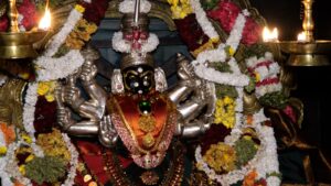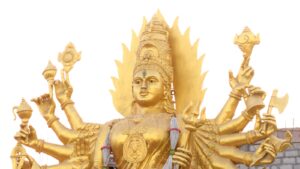 ‘ಚಾಮುಂಡಿ’ ಅಥವಾ ‘ದುರ್ಗಾ’ ‘ಶಕ್ತಿ’ಯ ಉಗ್ರ ರೂಪ. ಅವಳು ರಾಕ್ಷಸರ ಸಂಹಾರಕ, ‘ಚಂಡ’ ಮತ್ತು ‘ಮುಂಡ’ ಮತ್ತು ‘ಮಹಿಷಾಸುರ’, ಎಮ್ಮೆ-ತಲೆಯ ದೈತ್ಯ.