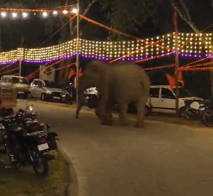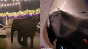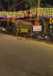 ದೇಗುಲದ ಪುನರ್ ಪ್ರತಿಷ್ಠಾಪನೆ ವೇಳೆ ದಾಂಧಲೆ ಮಾಡಿದ ಕಾಡಾನೆ.